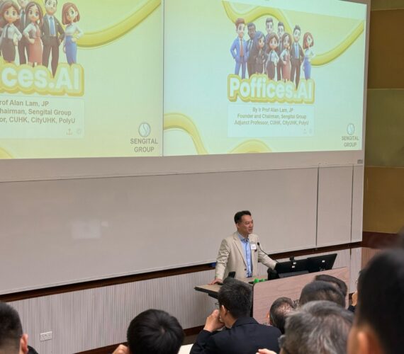 Ir Prof. Alan Lam, JP, introduced Poffices.AI at the CityUHK EE 30th Anniversary Celebration. Attendees also received an exclusive gift voucher for the gala dinner event.